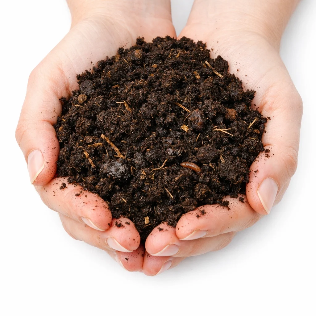 Compost and organic amendments. We feed the soil, not just the plants. Compost adds biology and organic matter. Other organic amendments like rock dust provide slow-release minerals that build long-term fertility.